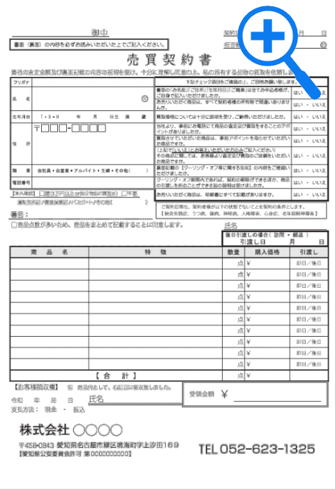 お客様から商品を買い取った時に発行する伝票・帳票全般に対応いたします。