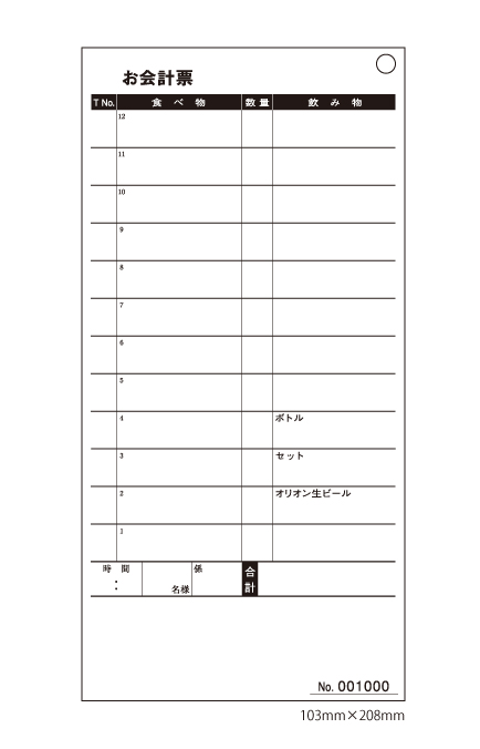 居酒屋、喫茶店、カフェ、ホテル,ラーメン店などで使用の会計伝票を使いやすく