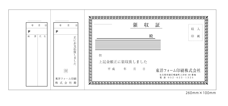 居酒屋、喫茶店、カフェ、ホテルなどで使用の領収証の版下を作成し印刷しますので、使い慣れた伝票をそのままご利用頂けます。お使い領収証を弊社にお送りいただき、それを基に版下を製作し、ご要望の数量を印刷いたします。
